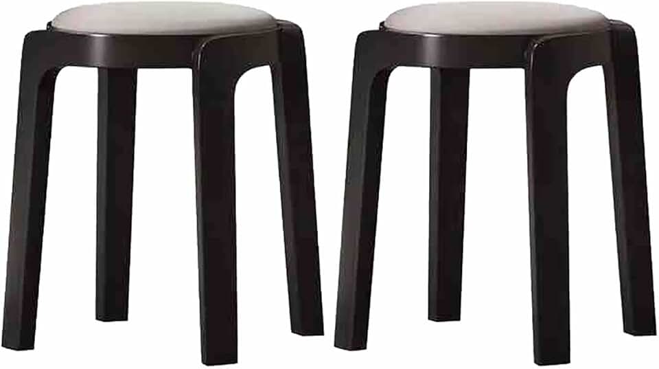 Stackable Round Top Chairs,Stackable Wood Dining Stools,Kitchen & Dining Room Stools,Comfortable Upholstered Stool,Thick Solid Wood Dressing Stool, for Dinning, Living Room, Class Room(Beige+black leg