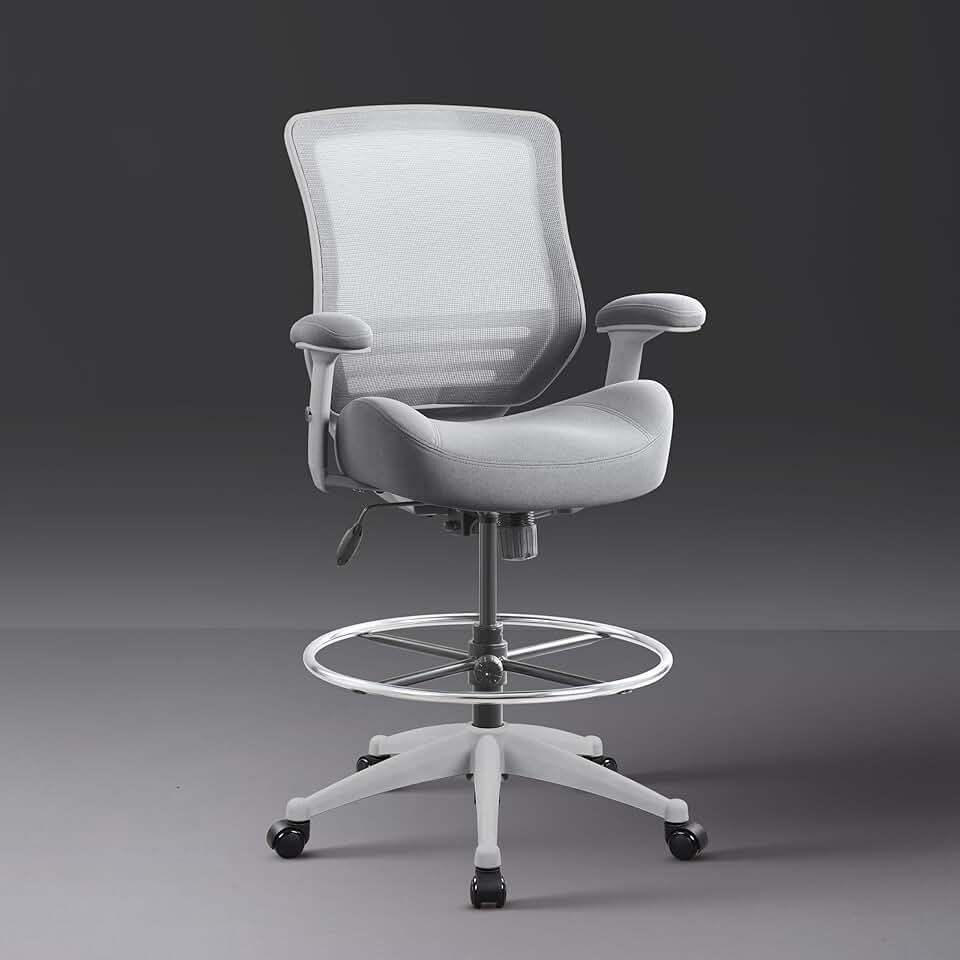 BOLISS Ergonomic Mesh Computer Office Drafting Chair with Super Soft Adjustable Arms Molded Foam Seat Cushion and Lumbar Support-Grey