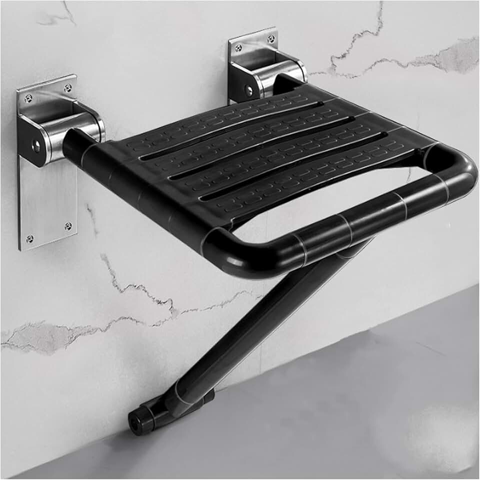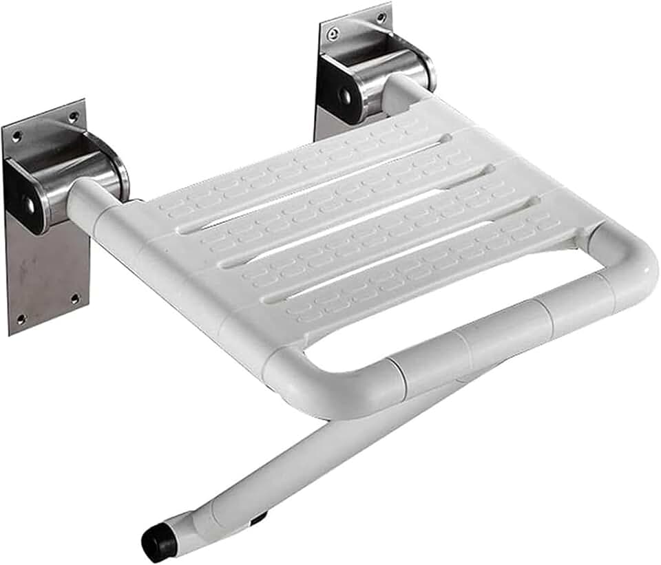 Bathroom Shower Stool, with Support Leg Aluminum Frame Shower Chair Elderly Bath Aid Benches Wall Mounted Folding Bathing Seat Shower Stool