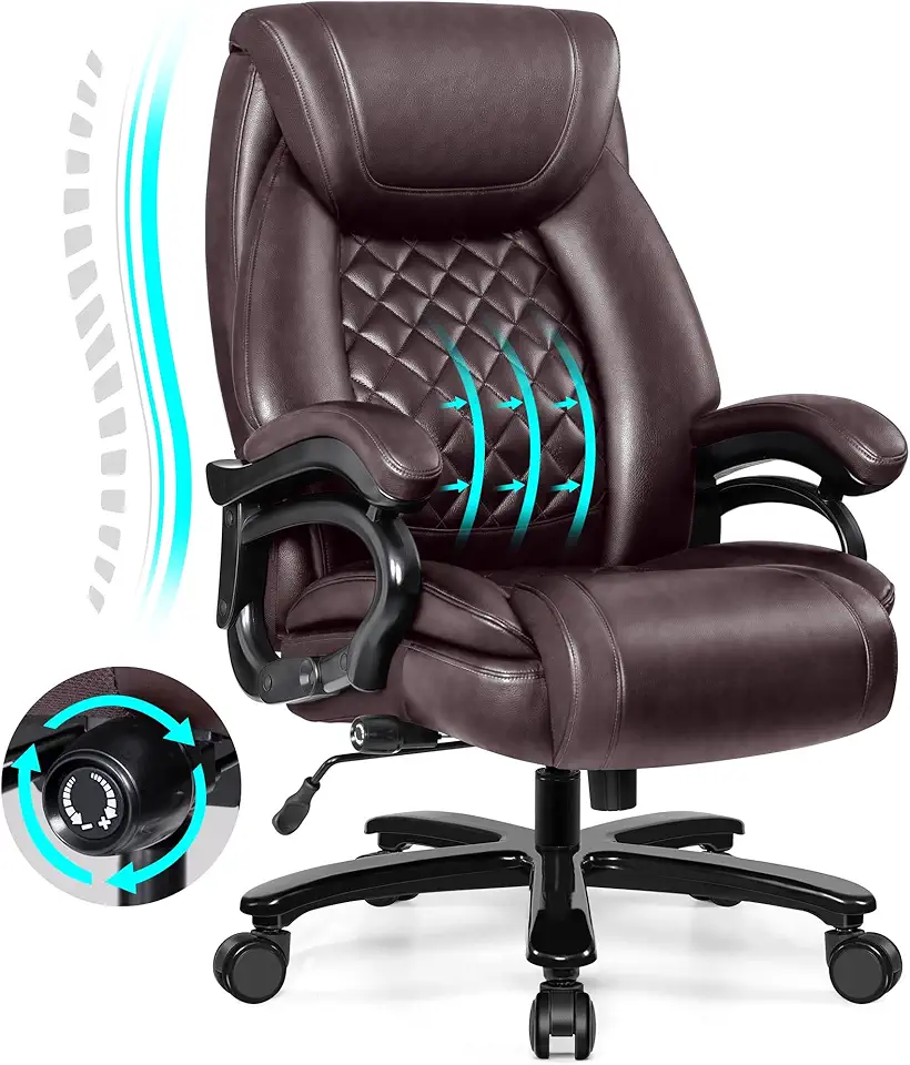 Big and Tall 500lbs Office Chair,Heavy Duty Large PU Leather Executive Desk Chair with Wide Seat, Adjustbale Ergonomic Lumbar Support High Back Rocking Computer Chair for Heavy People (Brown)