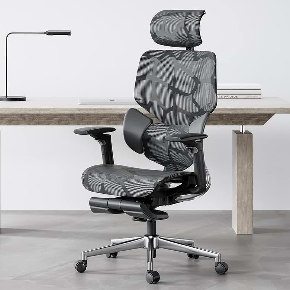 Newtral Ergonomic Chair with Footrest - Home Office Desk Chair with Auto-Following Lumbar Support, 4D Armrest, Seat Depth & Height Adjustable, 96°-136° Reclines