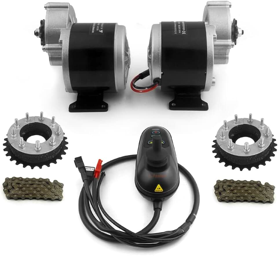 L-faster DIY Hand Joystick Controller Spokes Left Right 24V 250W Drive Dual Motor Wheelchair Cart Conversion Kit with Remote