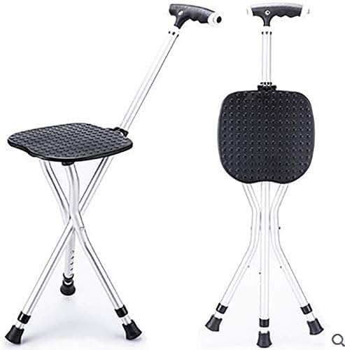 Adjustable Crutches, Folding Seat Cane Walking Stick & Chair Seat Height Adjustable Tripod Suitable for The Elderly Crutches