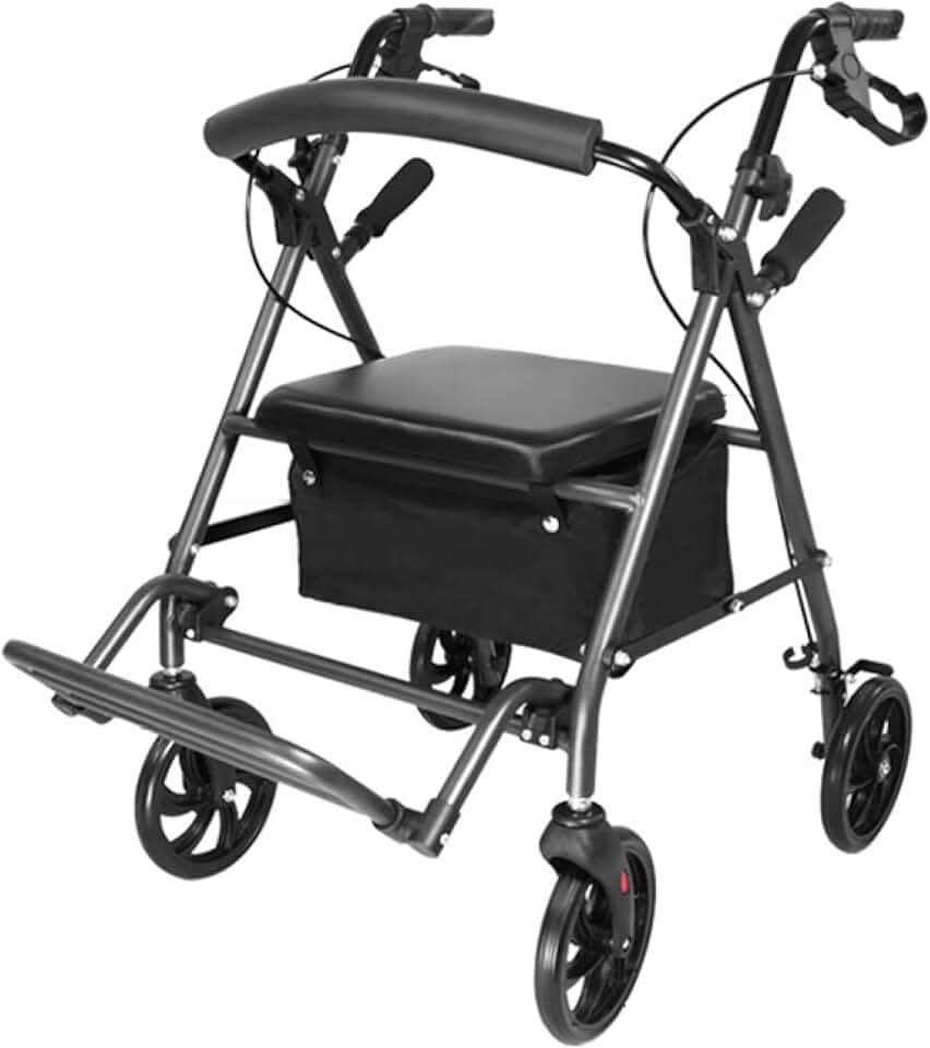 Adjustable Rolling Walker with Footrest - Carbon Steel Mobility Portable Transport Wheelchair Rollator with 8 inch Wheels, for Seniors