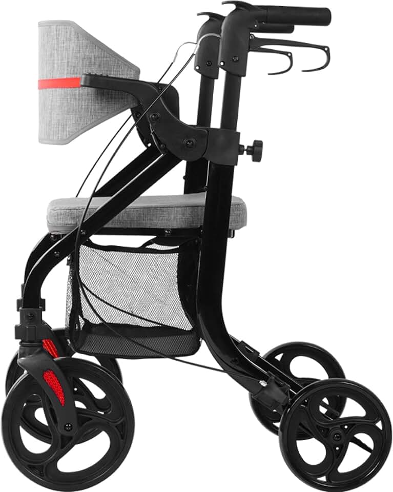 ELQ Portable Rollator Walker for Elderly, Drive Medical Transport Wheelchair with Shopping Basket, Backrest and Cushion, Can Load 150KG Foldable Seniors Rollator Walker