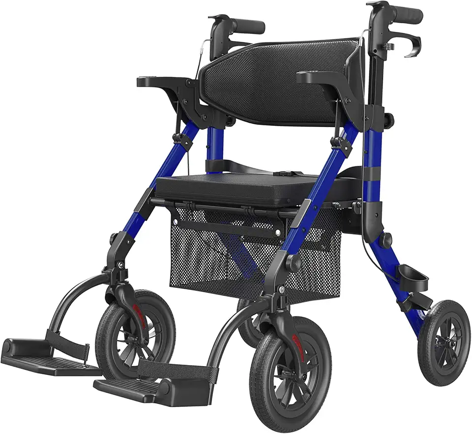 Transport-Wheelchair-Lightweight-Foldable, Walker Wheelchair Combo, Rollator Walkers for Seniors with Seat, 2 in 1 Rolling Walker, 300lb Adults 4 Wheel Transport Chair w/Brakes & Pouch-2024 New