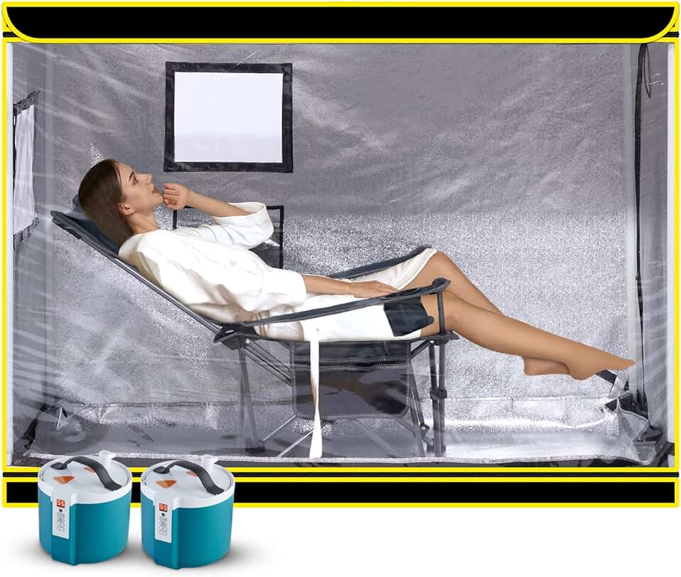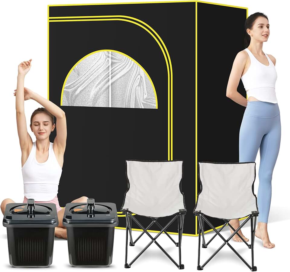 Full Size Portable Sauna Tent with 4L Steamer Pot, Collapsible Personal Home Body Therapy Spa Steam Heating Kit Machine for Relaxation with Foldable Chair, Level and Timer Setting