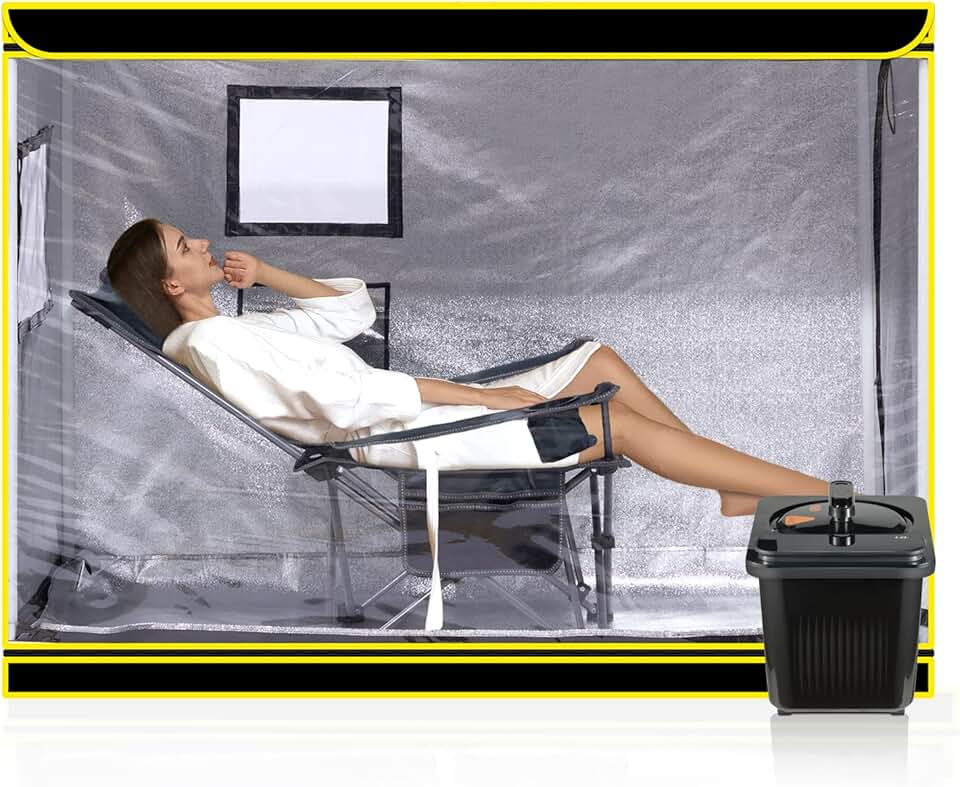 Full Size Portable Steam Sauna, Reclining Personal Sauna with Foldable Lounge Chair for Home Spa, Lightweight Full Body Saunas Tent with 1000W Steamer for Relaxation
