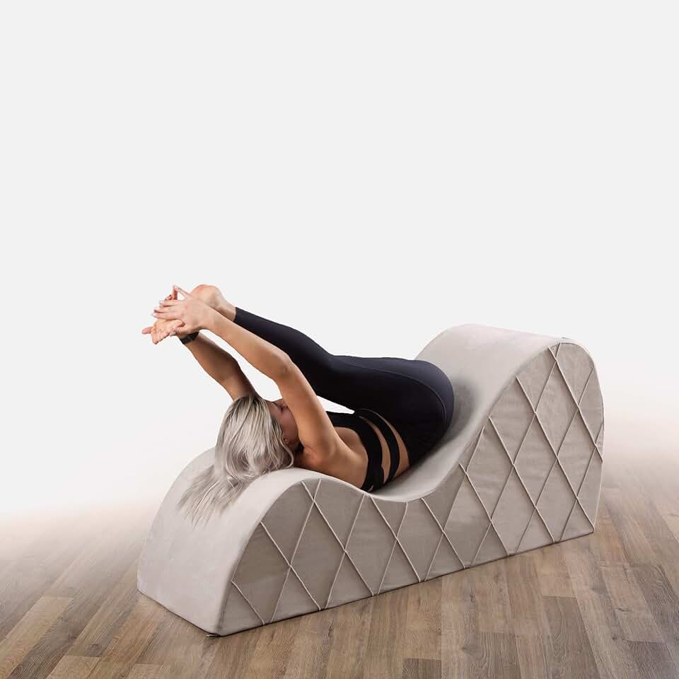 BEDIA Curved Chaise Lounge Chair for Yoga, Stretching, Relaxation and More⦠(Linen Dark Grey)