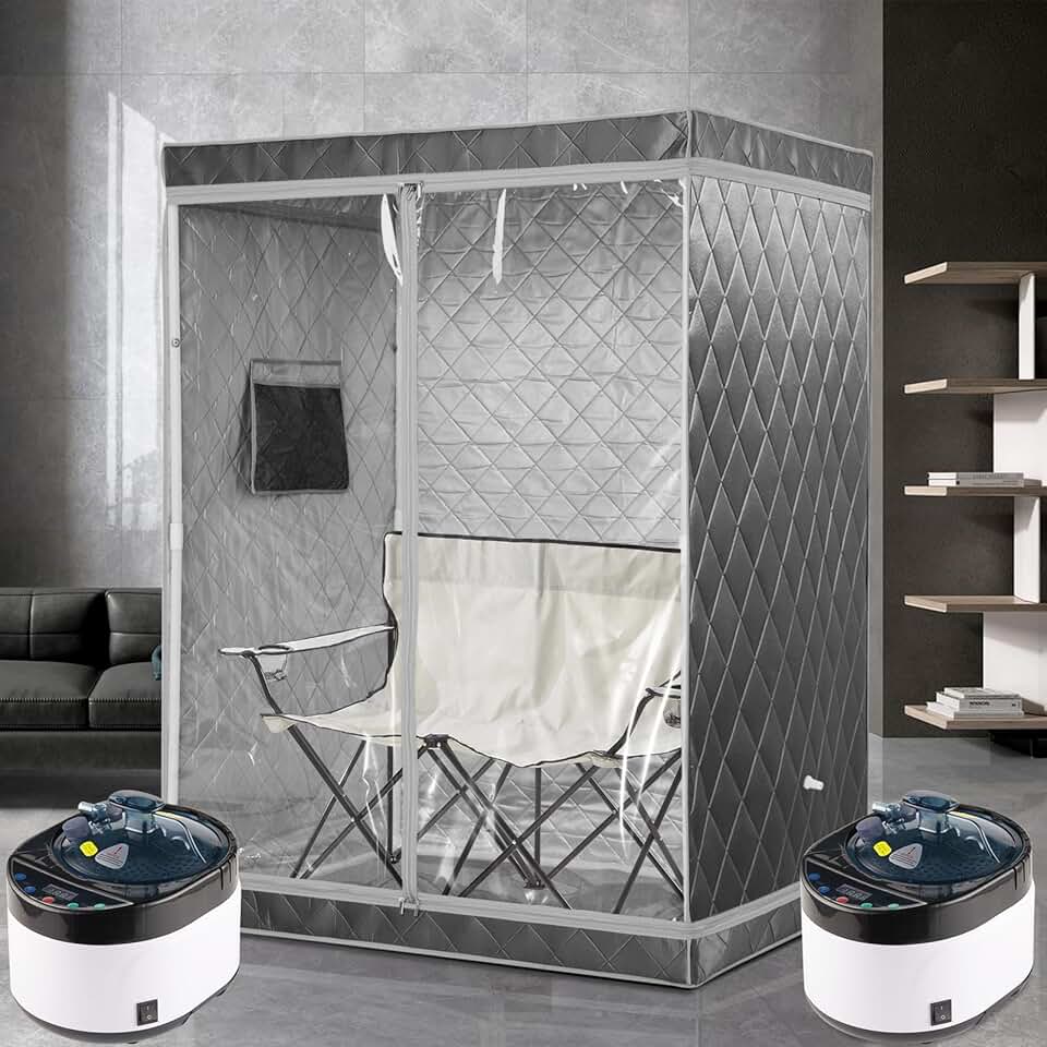 Portable Steam Sauna, Full Size Personal Home Sauna with 2 Steam Generator and Timing Control Remote, Foldable Chair, in-Home Use for Relaxation, Recovery, and Wellness