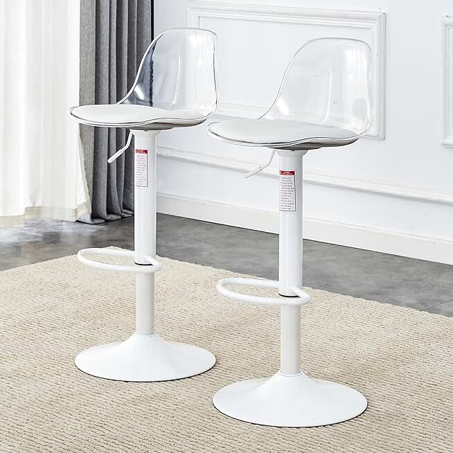 Modern minimalist bar chairs and bar stools. Can rotate 360 ° and adjust lifting. PET backrest and leather seats. Set of 2. Suitable for bars, restaurants, and front desk cashiers.