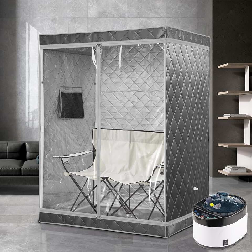 2 Person Sauna, Portable Steam Sauna Tent for Home, 1 or 2 Person Foldable Lightweight, Full Body Sauna Tent for Relaxation, 2 Person Foldable Chair(Grey)