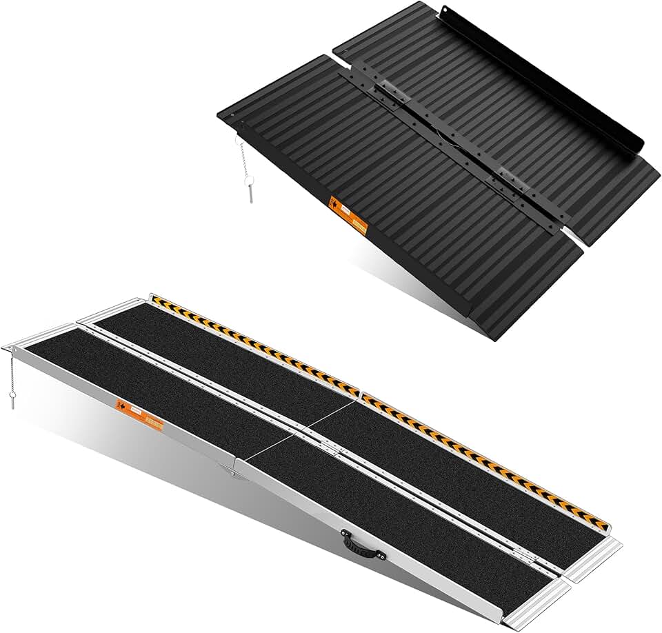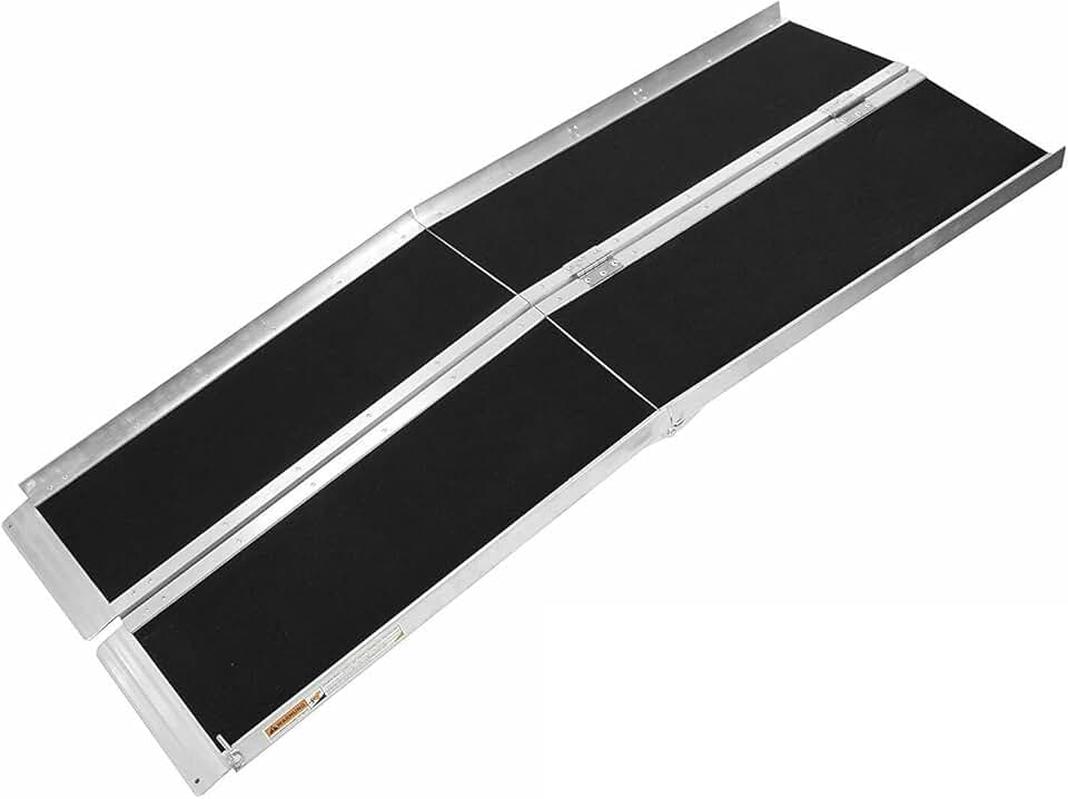 Indoor and Outdoor Use, Non-Skid Safety Surface, Sturdy Durable Anti-Corrosive Aluminum Alloy Construction Easy Carry Ergonomic Handles Wheelchair Portable Folding Ramp Elderly Disabled Life-Saver 8ft