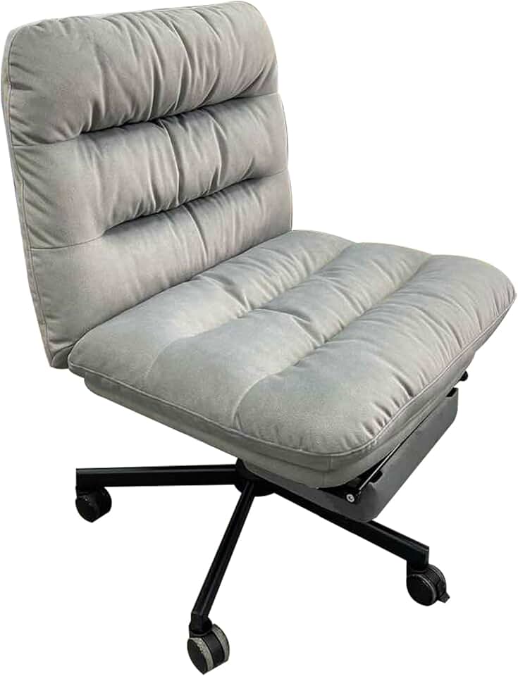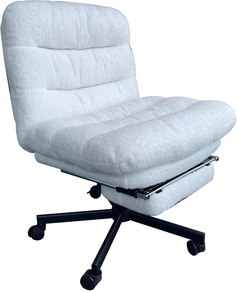 Home Office Desk Chair Comfy 400lb Capacity, Height Adjustable Wide Thickly Padded Seat Cross-Legged Office Chair with Leg Rests, Rocking, and Wheels, Teddy Off-White Vanity Makeup Chair