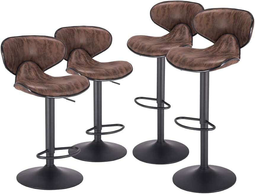 Modern Home Kappa Vintage Contemporary Faux Leather Adjustable Height Barstool - 21" - 32" Variable Height Bar/Counter Chair - Black Base and Gas Lift (Brown, 4)