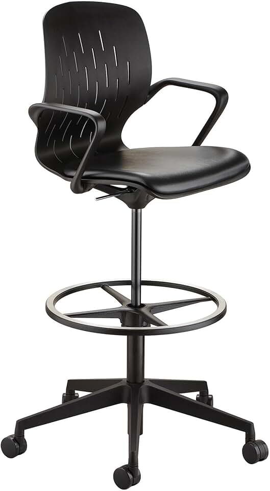 Safco Products Shell Extended Height Swivel Office Desk Computer Ergonomic Chair, Pneumatic Height Adjustable, Black (7014BL)