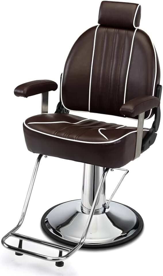PVC Leather Barber Chair with Headrest - Brown