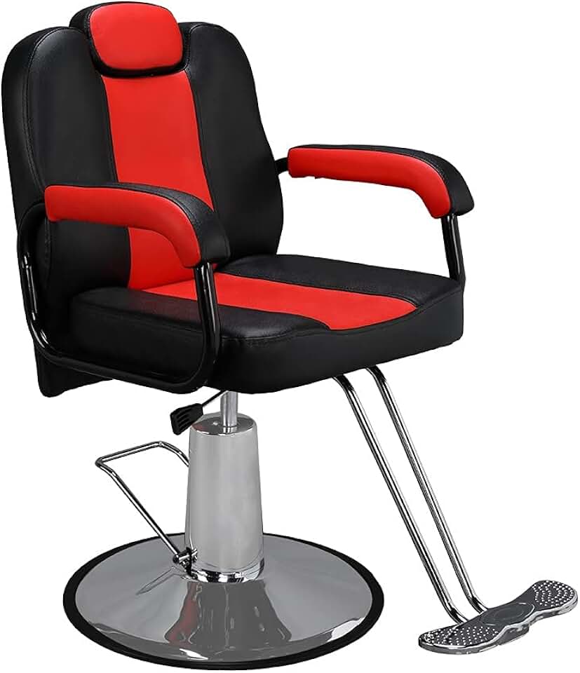 Reclining Barber Chair Hydraulic Salon Chair with Adjustable Headrest and Heavy Duty Base for Hair Cutting