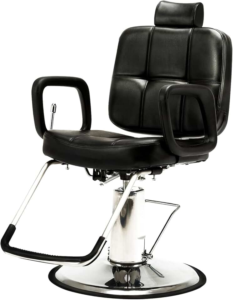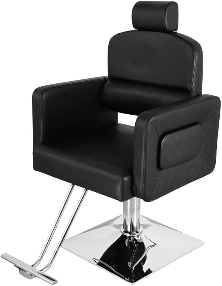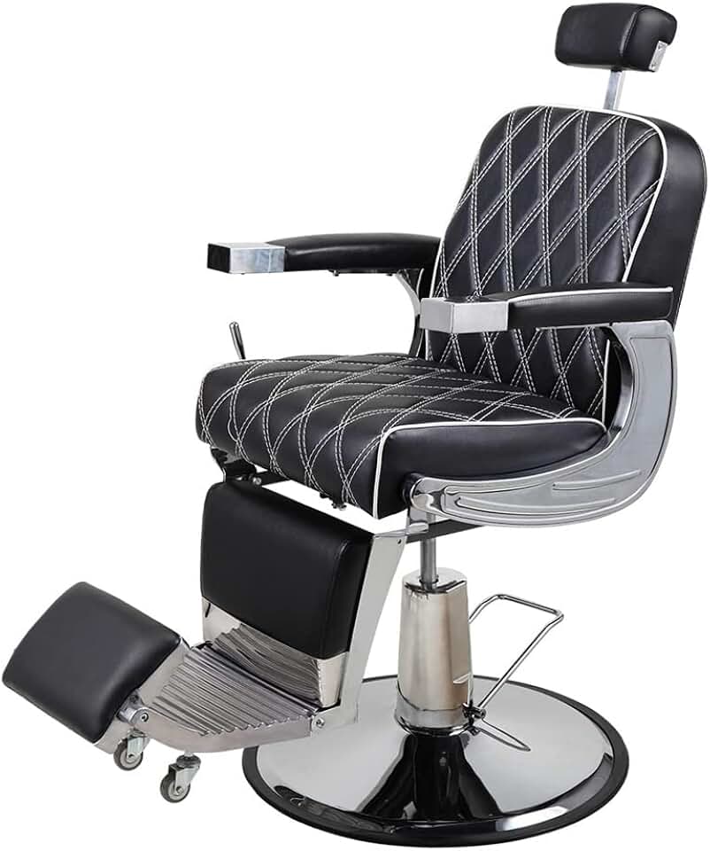 PVC Leather Cover Galvanized Square Plate with Footrest Reclining Barber Chair 300lbs Black