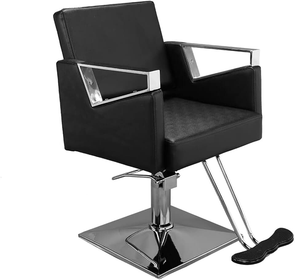 Square Barber Chair Beauty Salon Equipment PVC Leather Black Easy Assemble Clean 74x60x90/105CM
