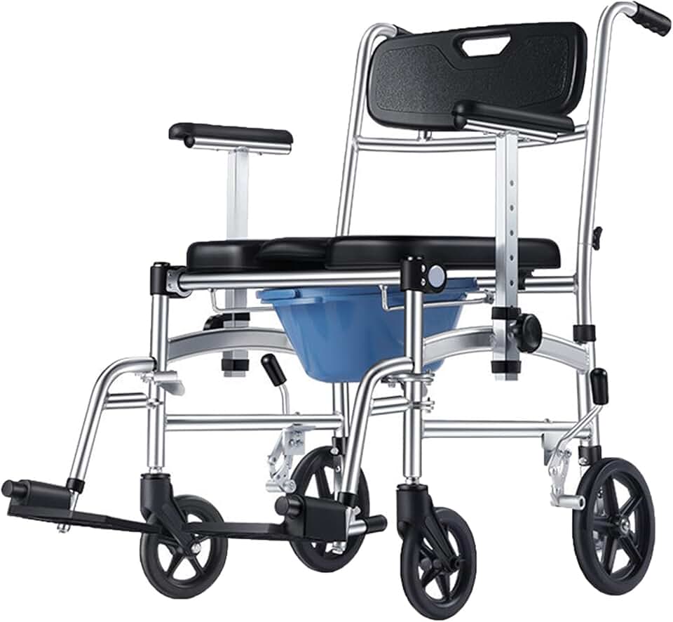 Bedside Commode Chair, 4 in 1 Toilet Rolling Transport Chair with Arms and 4 Brakes, Shower Wheelchair for Adults, Senior, Elderly, Handicap, Disabled