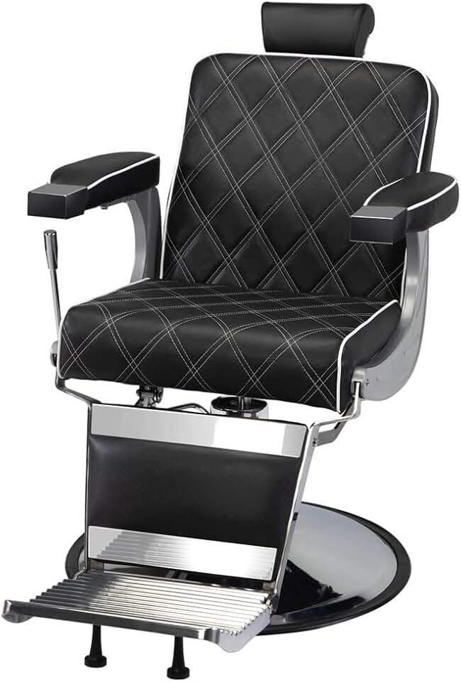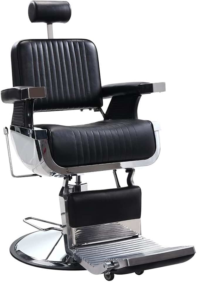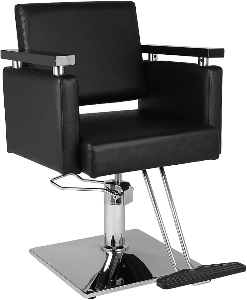 Barber Chair PVC Leather Case 300lbs Load-Bearing Stainless Steel Square Plate with Footrest Barber Chair Black