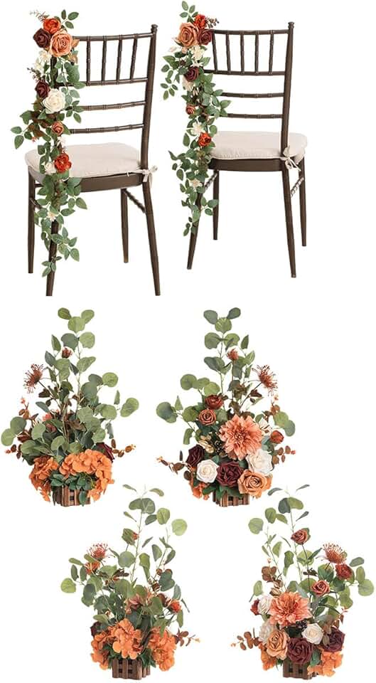 Ling's Moment Wedding Chair Decorations Aisle Floral Swag Garlands 10pcs -Free Standing Artificial Flowers Arrangement-Ceremony Reception Church Rose Floral Faux Arrangement Party Outdoor Decor