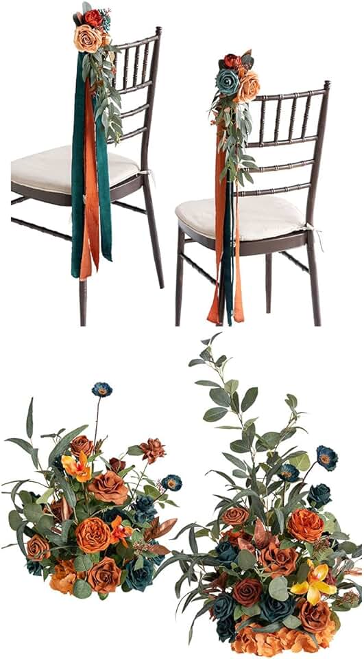 Ling's Moment Wedding Chair Decorations Aisle Floral Swag Garlands 10pcs -Free Standing Artificial Flowers Arrangement-Ceremony Reception Church Rose Floral Faux Arrangement Party Outdoor Decor