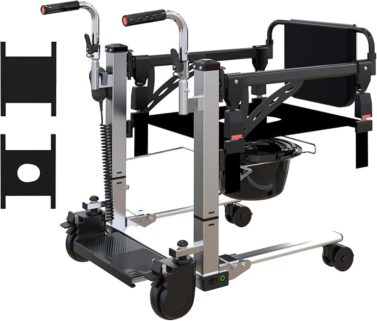 Electric Patient Lift Transfer Chair,Hoyer Lifts for Home,Hydraulic Patient Lift Transfer Chair, Bathroom Wheelchair with 180° Split Seat and Potty, Portable Elderly Lift Bedside Commode