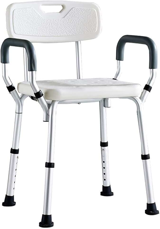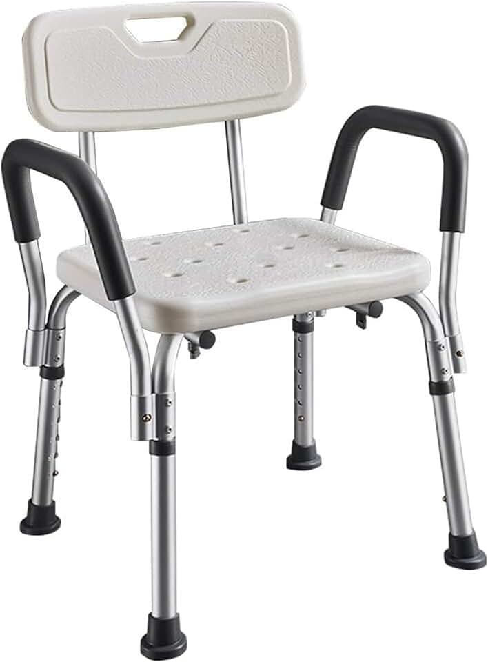 Elderly Bath Stool, Adults Disabled Bathroom Chair with Backrest Handle Anti-Slip Legs Adjustable Height Shower Seat Shower Stool, 41x34cm, White