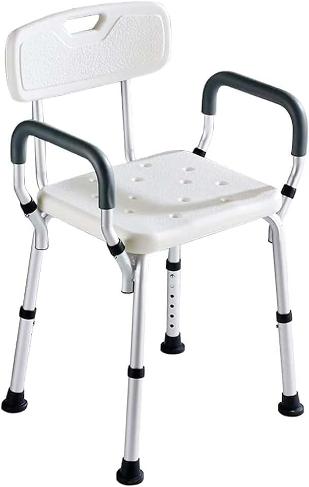 Elderly Bath Stool, Adults Disabled Bathroom Chair with Backrest Handle Anti-Slip Legs Adjustable Height Shower Seat Shower Stool, 41x34cm, White