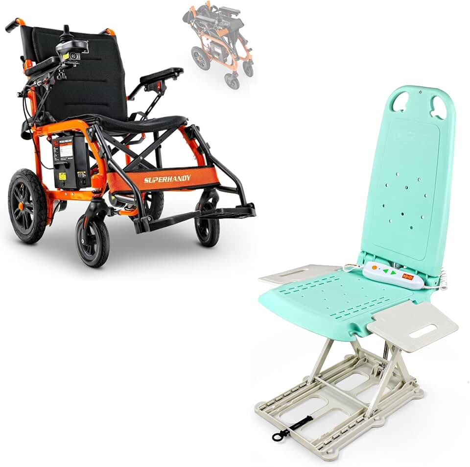 SuperHandy GoRide Electric Wheelchair - Lightweight 39lbs, Capacity 220Lbs & Portable Floor and Bath Lift 2 in 1 [Bundle Deal]