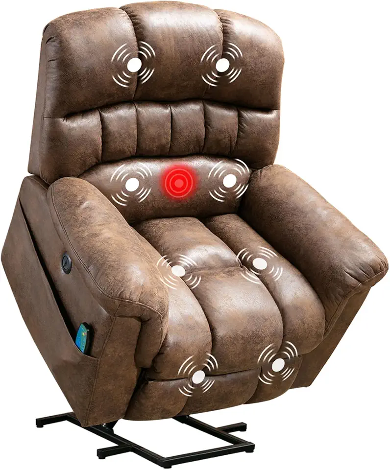 Phoenix Home Large Power Lift Recliner with Massage and Heat for Elderly, Heavy Duty & Safety Motor Reclining Chair, Faux Leather Electric Wider Recliner with USB Ports, 2 Side Pockets, Brown