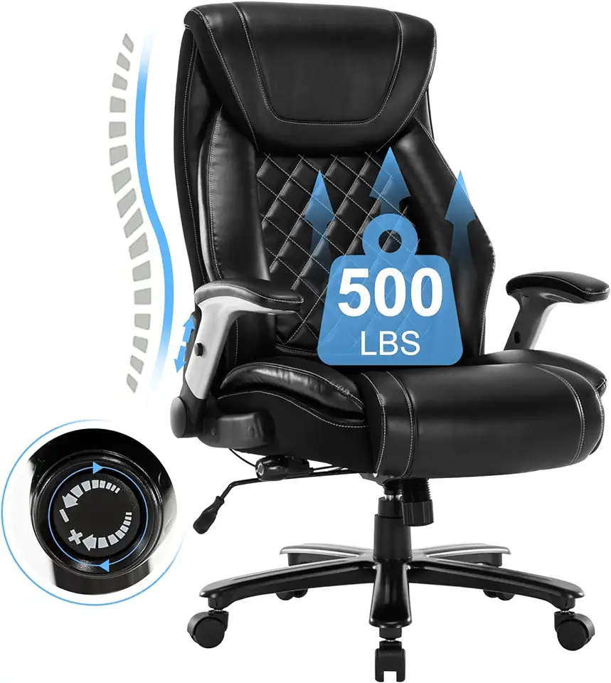 Big and Tall Office Chair 400LBS High Back Executive Chair Computer Chair- Adjustable Lumbar Support with Flip-Up Arms Large Desk Swivel Chair with Heavy Duty Metal Base,Black