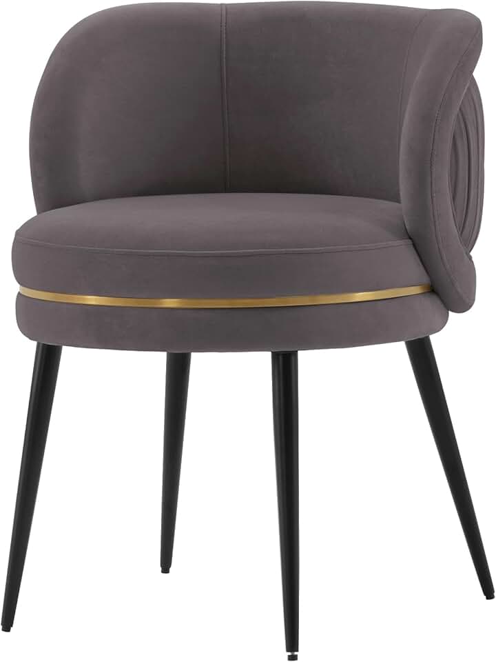 Manhattan Comfort Kaya Modern Velvet Dining Chair with Pleated Round Back, High Density Foam Padding & Premium Wood & Metal Frame, Accent Kitchen Furniture, Grey