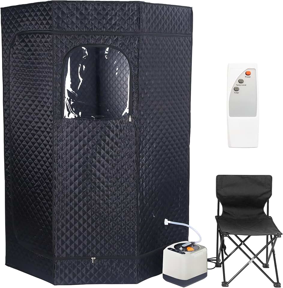 Portable Sauna Tent with Detachable Frame and Foldable Chair, 35.86 x 35.90 x 70.59 Inches, Sauna Tent with 3L Steamer Generator, Remote Control, Non-Slip Mat, 140°F Max. Temperature (Black)