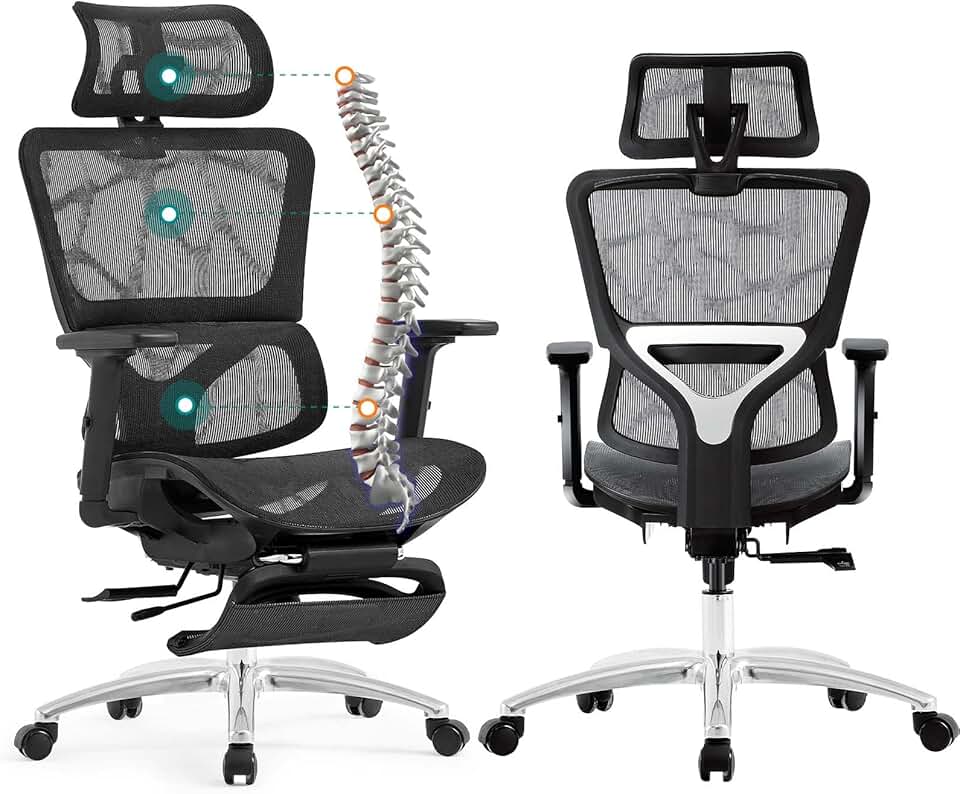 Ferral Ergonomic Office Chair, High Back Home Office Desk Chair with Lumbar Support, 4D Adjustable Armrest & Seat Depth, Computer Mesh Office Chair with Tilt Function, Adjustable Headrest, footrest