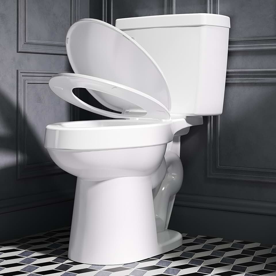 ELLAI Two Piece Elongated Toilets ADA Chair Comfort Height 16.5" Powerful Single Flush 1.28 GPF 12” Rough In with Side Trip Lever, White 28.3"x17.2“x31"
