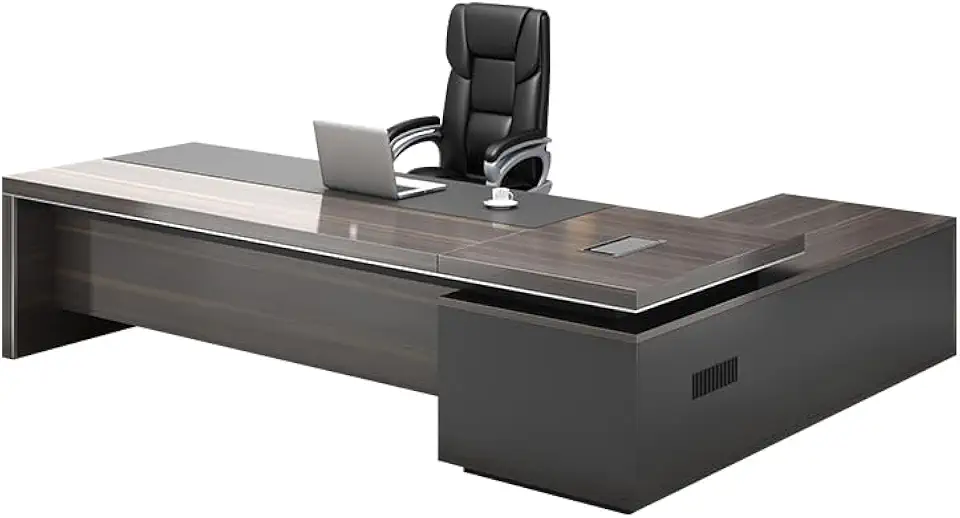 LITFAD Modern Office Computer Desk Wood Executive Desk with Side Storage, CPU Stand and Cord Management, L-Shape Writing Desk Boss Table Home Office Furniture Without Chairs, 79" L x 63" W x 30" H