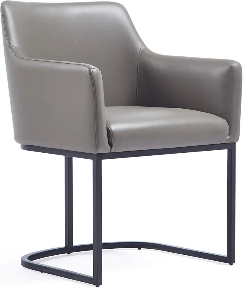 Manhattan Comfort Serena Modern Faux Leather Dining Chair with Arms, Leatherette Upholstered Accent Armchair with Foam Padding and Geometric Metal Base, Grey