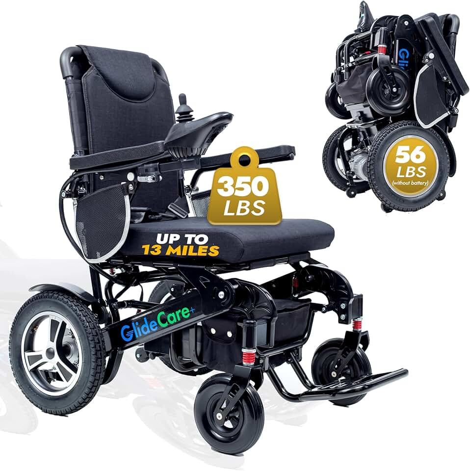 Glide Care G-6 Lightweight Foldable Electric Wheelchair for Adults, Motorized Power Wheelchair, Airline Approved, Compact Folding Design for Travel and Outdoor Use, 13 Miles Travel Range, Black Frame