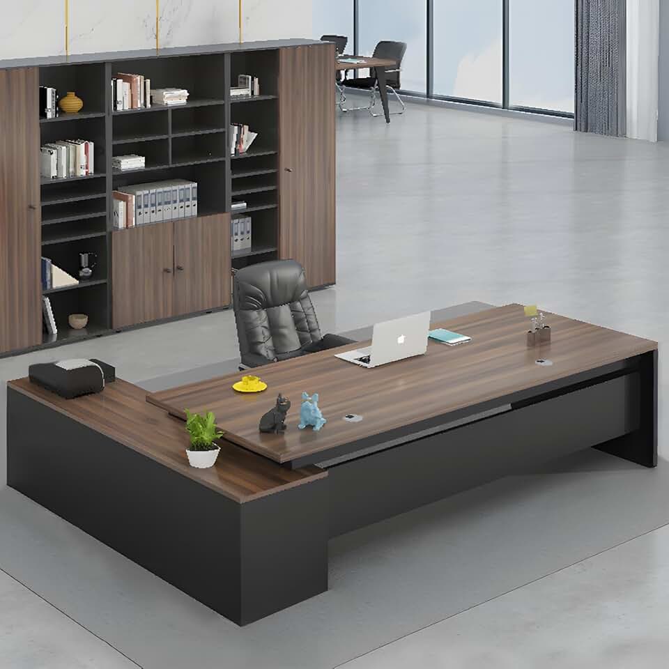 LITFAD Modern L-Shape Office Desk with Wood Base Executive Desks Boss Table Computer Desk Home Office Furniture with Drawers and Storage Shelves - Without Chairs 78.7" L x 31.5" W x 29.5" H Brown