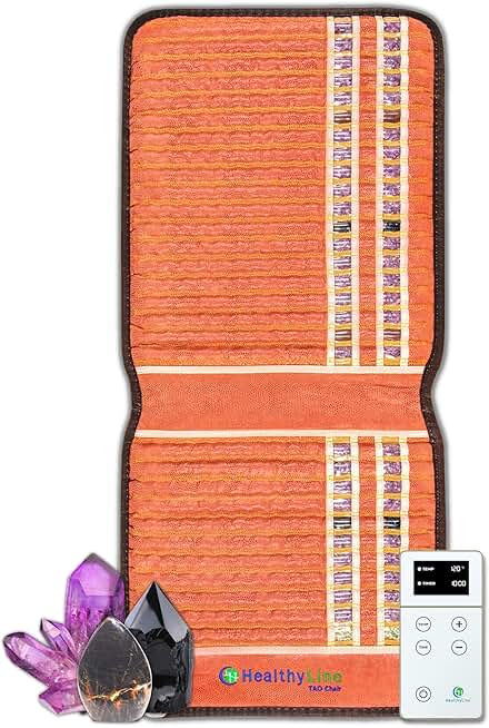 HealthyLine TAO Far Infrared Heating Pad - Natural Crystal Gemstones Mat for Back Pain - Electric Auto Shut Off - Rejuvenating Negative Ions Therapy - for Chair 40" x 18"