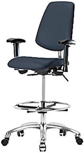1163U99 Cleanroom Vinyl Medium Bench Height Chair with Medium Back, Chrome Base, Without Tilt, Adjustable Arms, Without Foot Ring, Chrome Casters, Imperial Blue