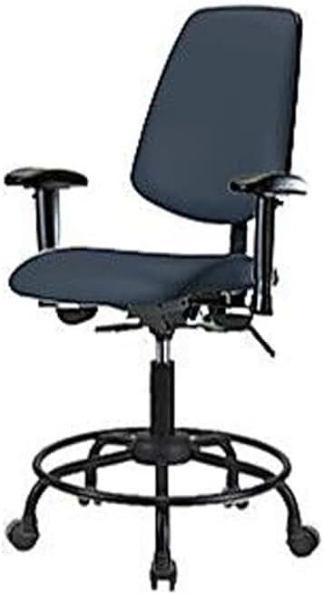 1163P51 Vinyl High Bench Height Chair with Medium Back and Tilt, Nylon Base, Adjustable Arms, Chrome Foot Ring, Casters, Imperial Blue