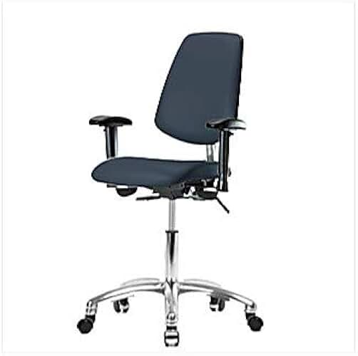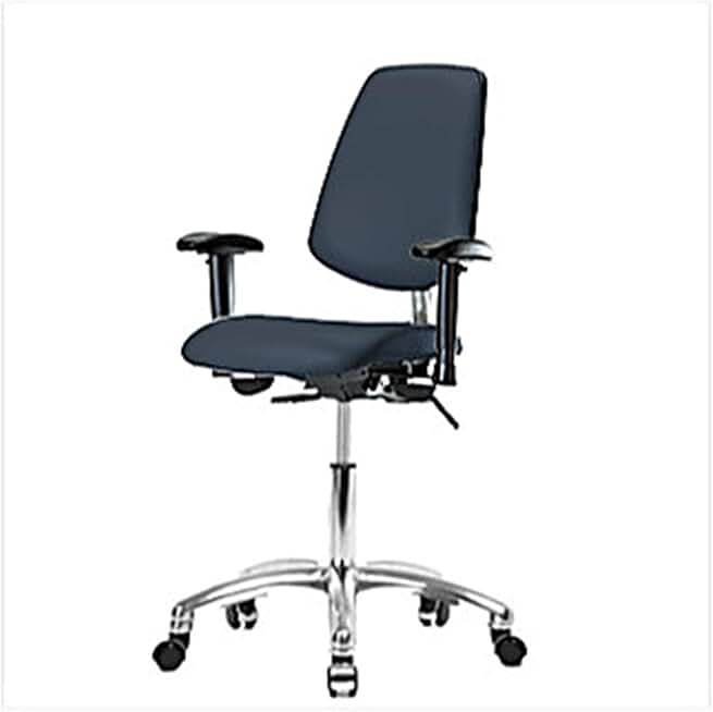 1163U19 Cleanroom Vinyl Desk Height Chair with Medium Back, Chrome Base, with Tilt, Adjustable Arms, Chrome Casters, Imperial Blue