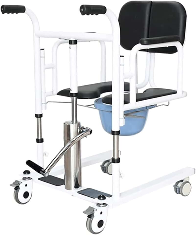 Hydraulic Patient Lift for Home Steel Transfer Chair Bedside Commode w/180° Split Seat and Potty Portable Transfer Lifter 150kg/330lbs for The Elderly