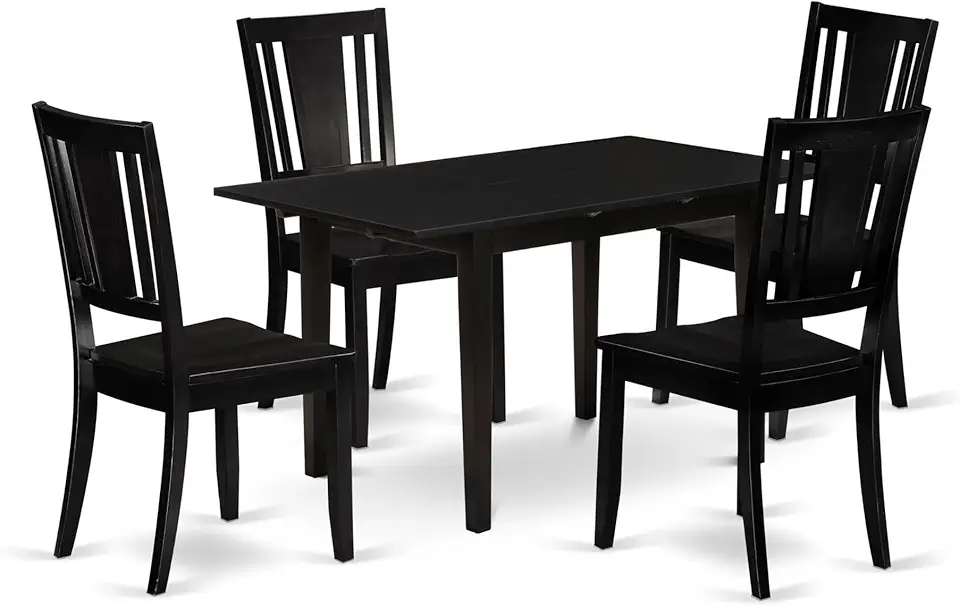 East West Furniture Norfolk 5 Piece Kitchen Set Includes a Rectangle Table with Butterfly Leaf and 4 Dining Room Chairs, 32x54 Inch, NODU5-BLK-W