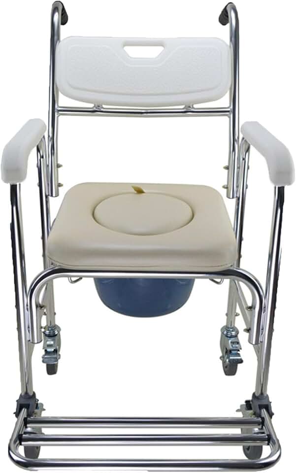 Accessibility Commode Wheelchair, Rolling Shower Wheelchair with Wheels Arms Back and 4 Castor, Circular Detachable Bucket and Waterproof Design