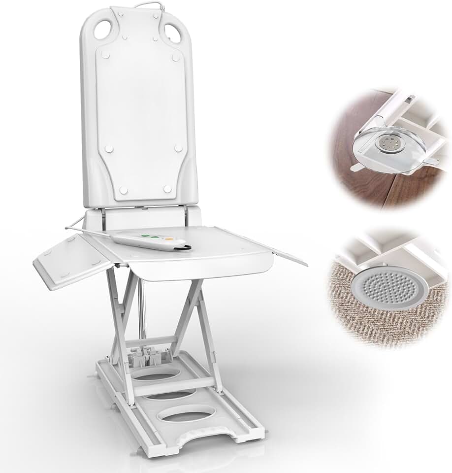 Electric Chair Lift with 2 Types Suction Cups, Fall Assist Devices Lift You Up from Floor, Floor Lift Height Up to 20", Support Up to 300 LBS, No Assembly Required, AX09 (White)